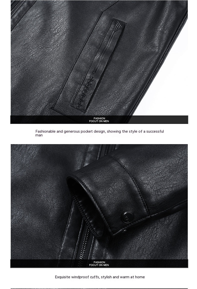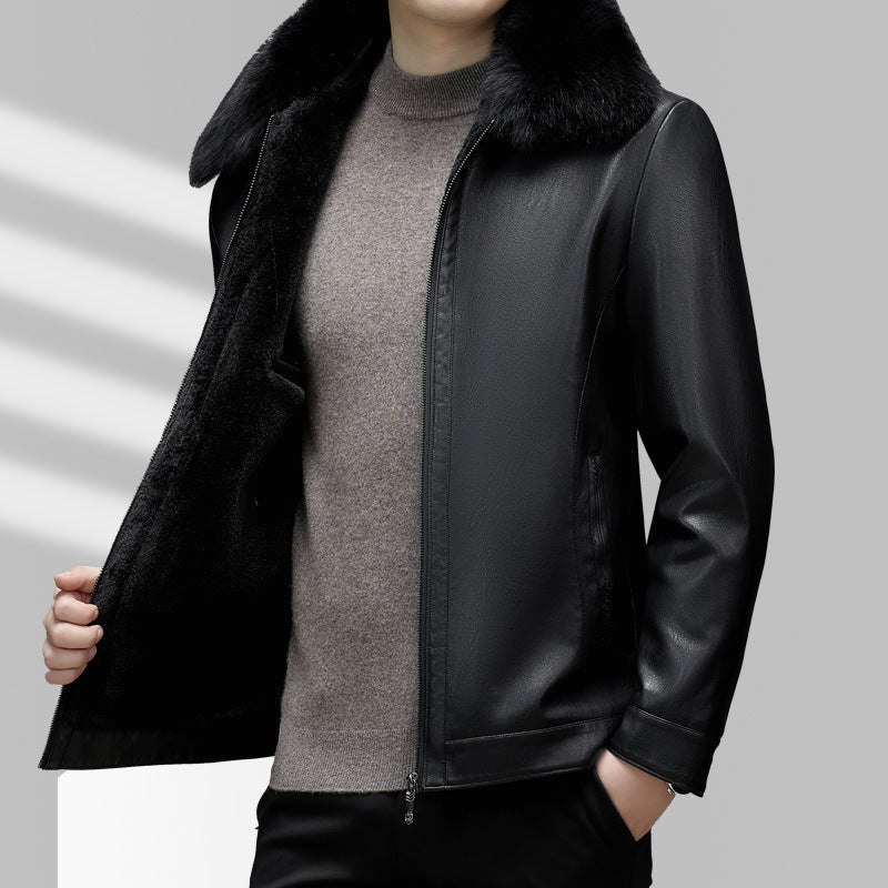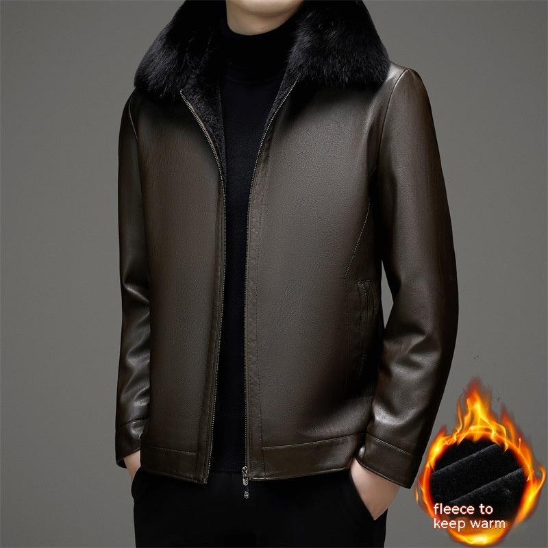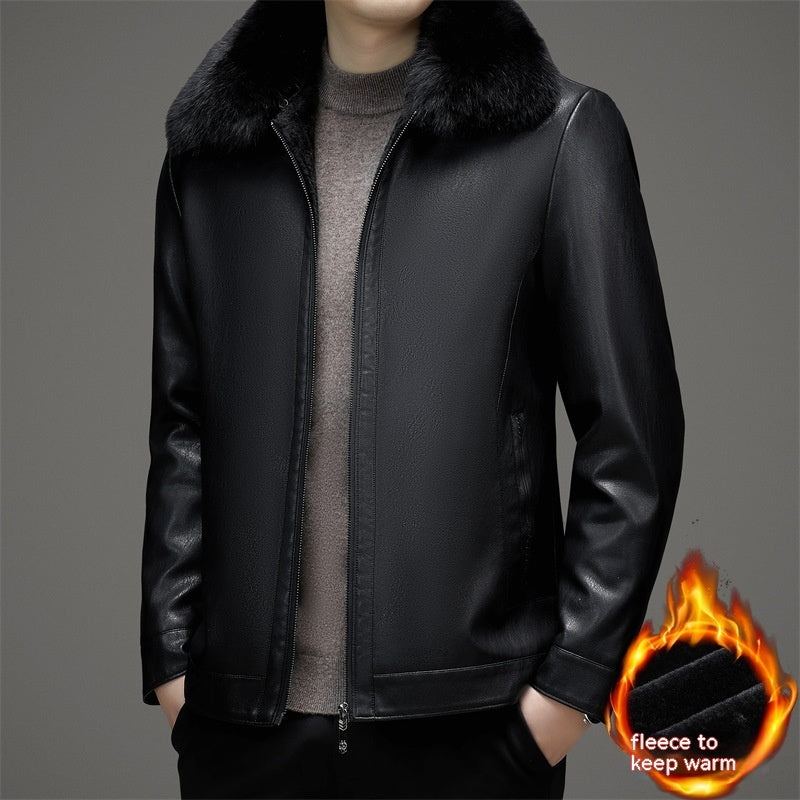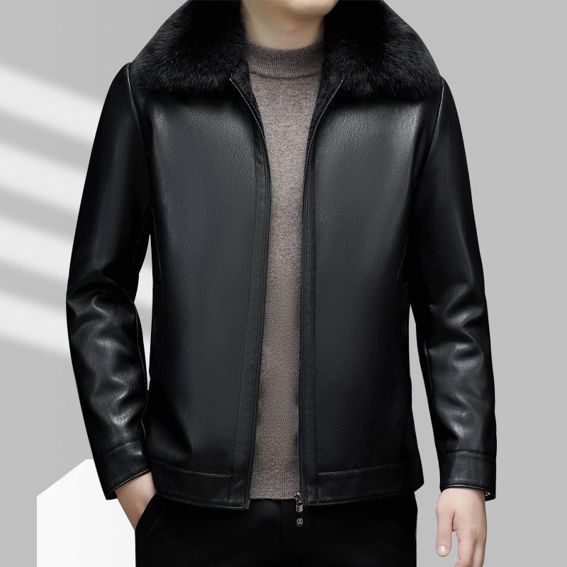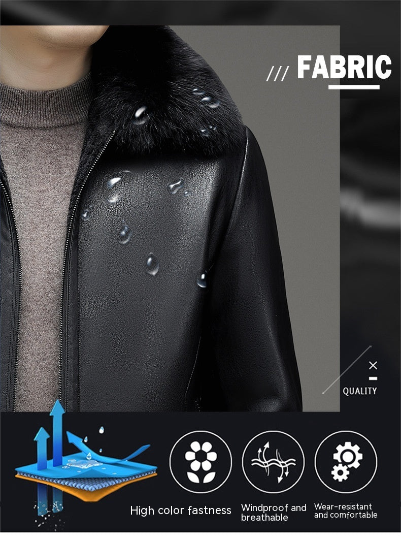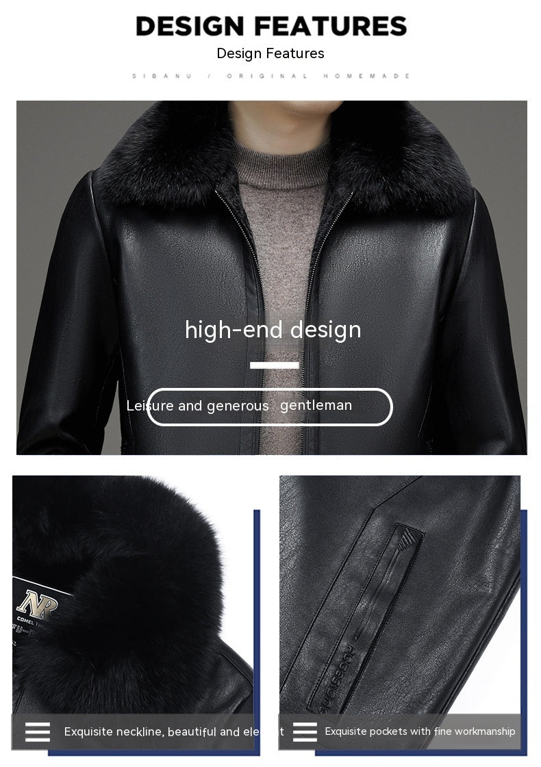 Business Casual Big Fur Collar Men's Leather Coat