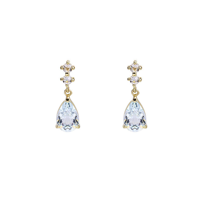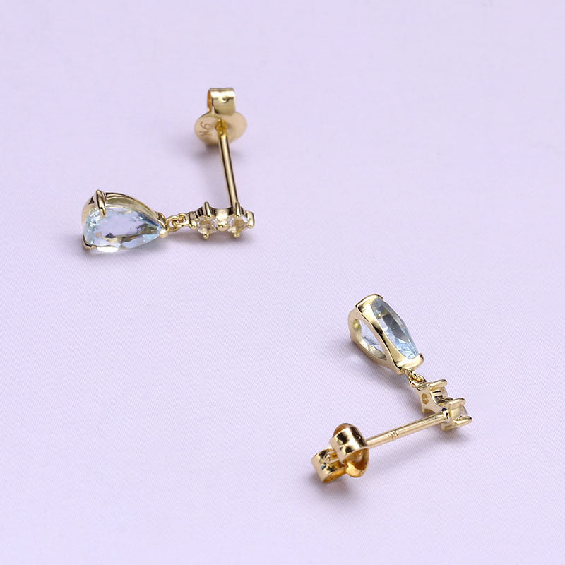 Gold Aquamarine Drop-Shaped Stud Earrings