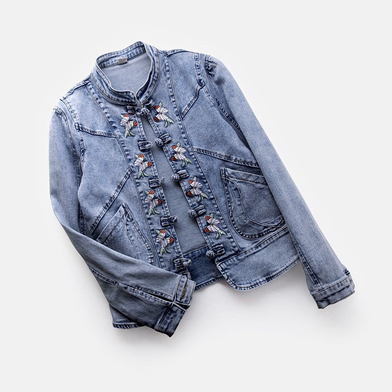 Retro-style Long-sleeved Jacket Slim-fit Stand-collar Top